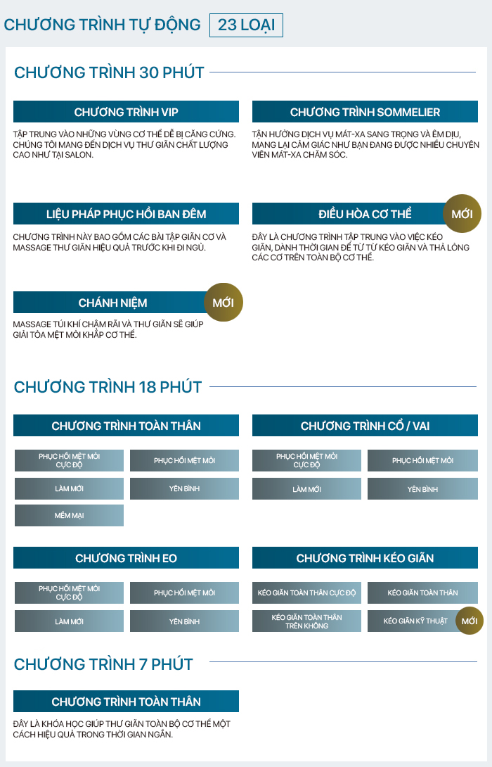 | Toàn thân | 23 chương trình |
