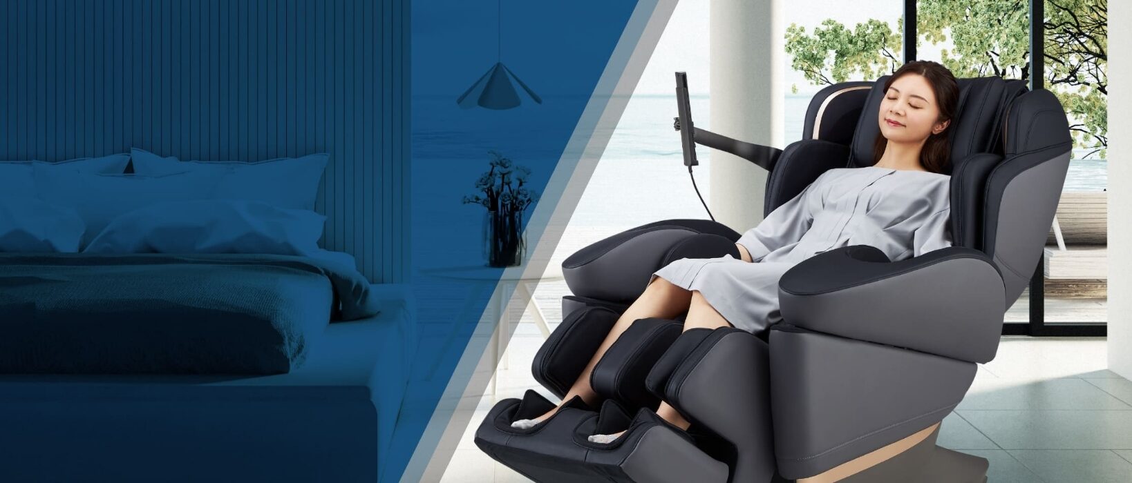 Góc ngả có thể được điều chỉnh tự do và phản ánh trong chương trình massage và được đăng ký