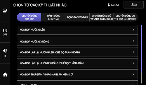 Bước 2: Đăng ký cường độ Massage từ vai đến mông