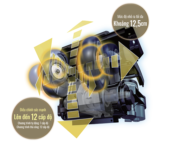 Lực massage có thể được điều chỉnh chính xác cho từng điểm trong 8 điểm trên cột sống