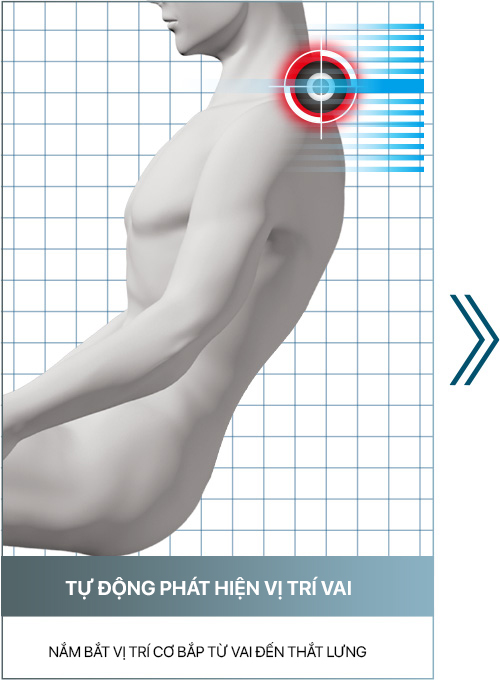 Hệ thống “Phát hiện vị trí vai” xác định chính xác điểm massage, trong khi “Cảm biến đường cong cột sống hình chữ S” quét 8 điểm trên cơ thể để nhận diện đường cong sống lưng. Theo đó, “5D-AI Mecha PLUS” mang đến liệu trình massage đồng đều và dễ chịu theo đúng đường cong cơ thể.