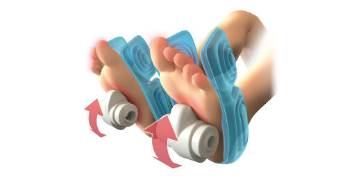 Túi khí giữ chặt cổ chân và mu bàn chân, sau đó con lăn chuyên dụng tác động mạnh vào gan bàn chân giúp giải tỏa mệt mỏi hiệu quả.