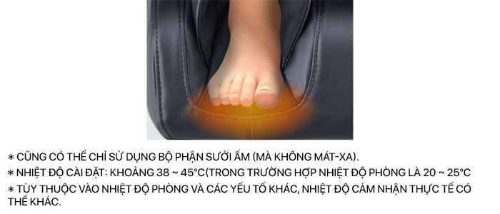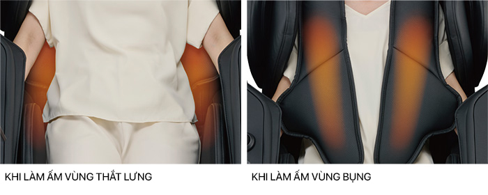 Sử dụng đệm lưng tích hợp sẵn bộ phận sưởi — khi đặt phía sau sẽ làm ấm vùng eo, khi tháo khóa kéo và đặt phía trước sẽ làm ấm vùng bụng (“Multifunctional Instant Heater”). Ngoài ra còn có “Bộ sưởi gan bàn chân” giúp làm ấm từ từ phần đầu ngón chân — nơi thường bị lạnh