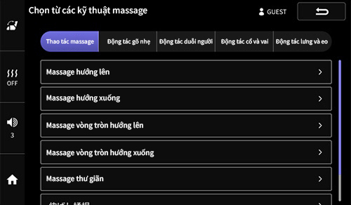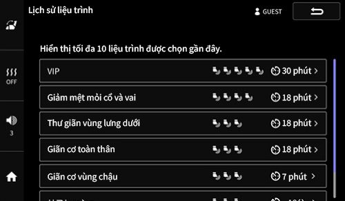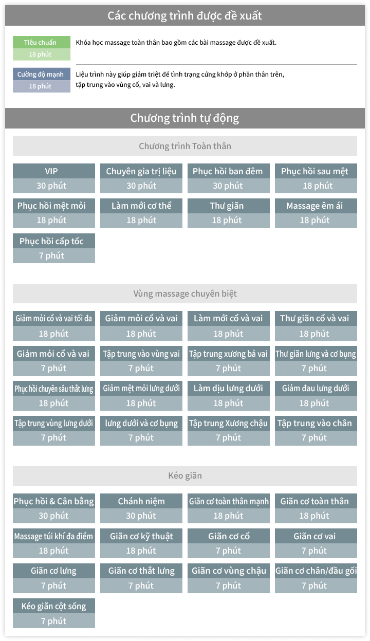 - “Standard” – liệu trình massage toàn thân, tích hợp các tính năng nổi bật và gợi ý massage tiêu biểu của máy.