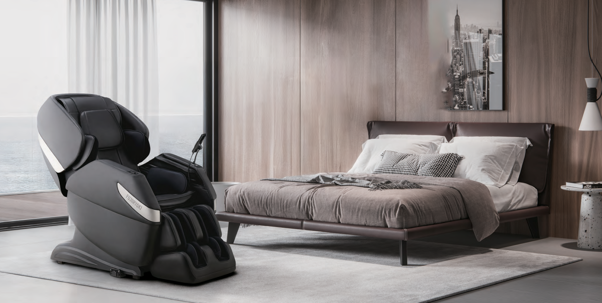 Dễ dàng thao tác theo nhu cầu chỉ bằng một nút bấm. Nhấn “Massage” để ghế tự động ngả về góc phù hợp nhất cho massage, hoặc nhấn “Lưu trữ” để lưng ghế và phần để chân tự động thu gọn về vị trí ban đầu.