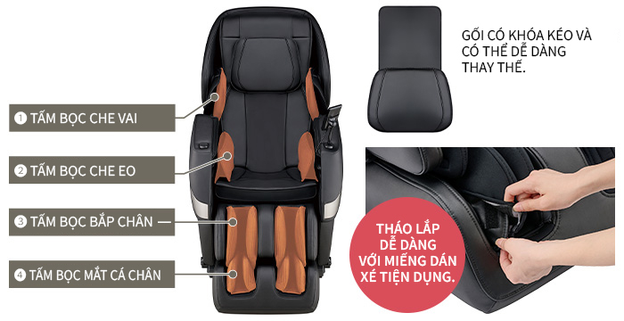 Vỏ bọc vải (4 vị trí): Vai, hông, bắp chân và cổ chân có thể thay thế dễ dàng.