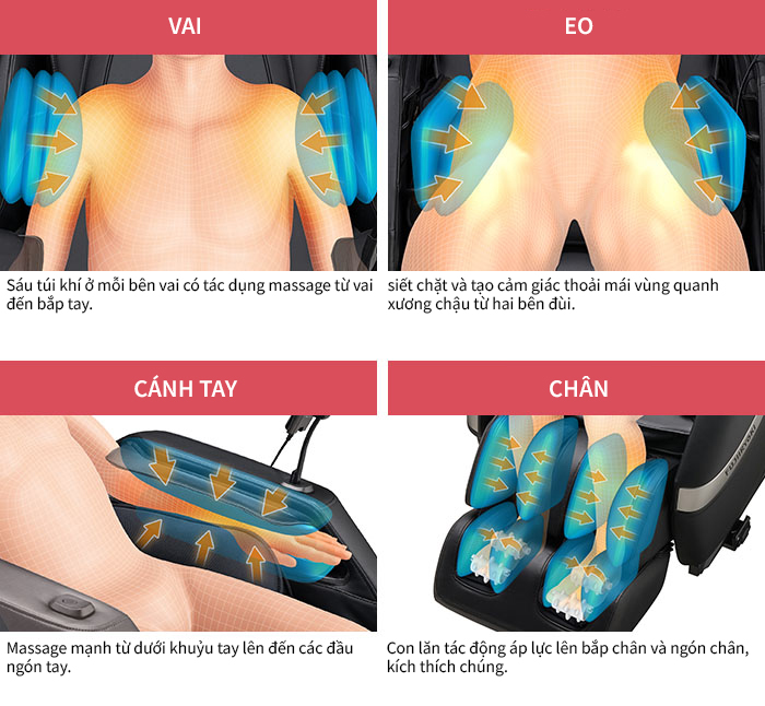Cơ chế massage 4 bi Air mới – Êm ái nhưng vẫn mạnh mẽ