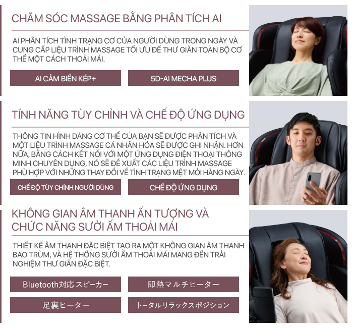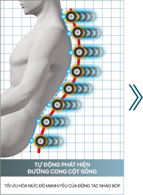 và hệ thống phát hiện đường cong S, AI sẽ tự động tối ưu các điểm massage.