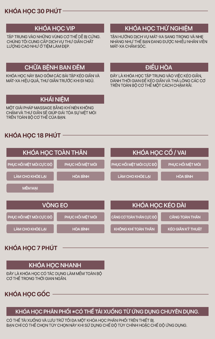 40 chương trình massage hỗ trợ chăm sóc điều chỉnh thể trạng