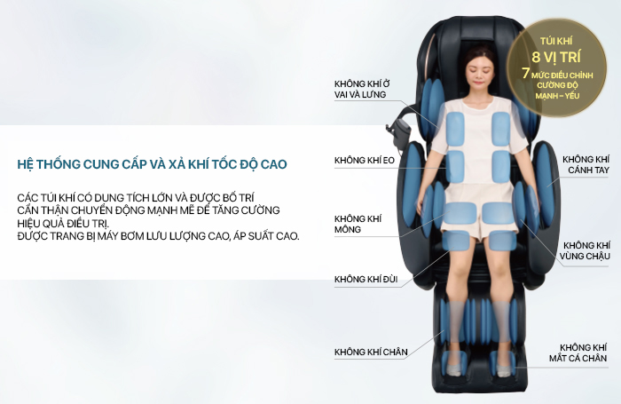 Massage kỹ lưỡng toàn thân bằng túi khí – “Hệ thống túi khí hiệu năng cao”